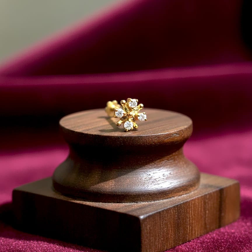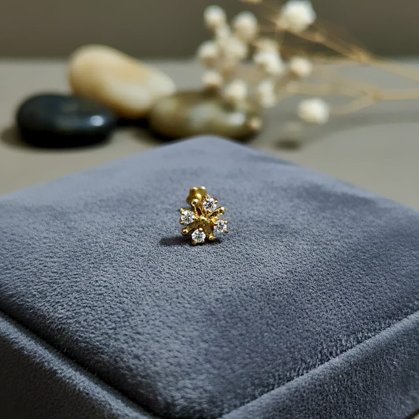 This exquisite American Diamond nose pin features a brilliant, ethically-sourced diamond set in a sleek, minimalist design. Its shimmering facets catch the light beautifully, adding a touch of elegance to any look. Crafted from 18k Traditional Gold, this nose pin is both durable and stylish, perfect for everyday wear or special occasions.