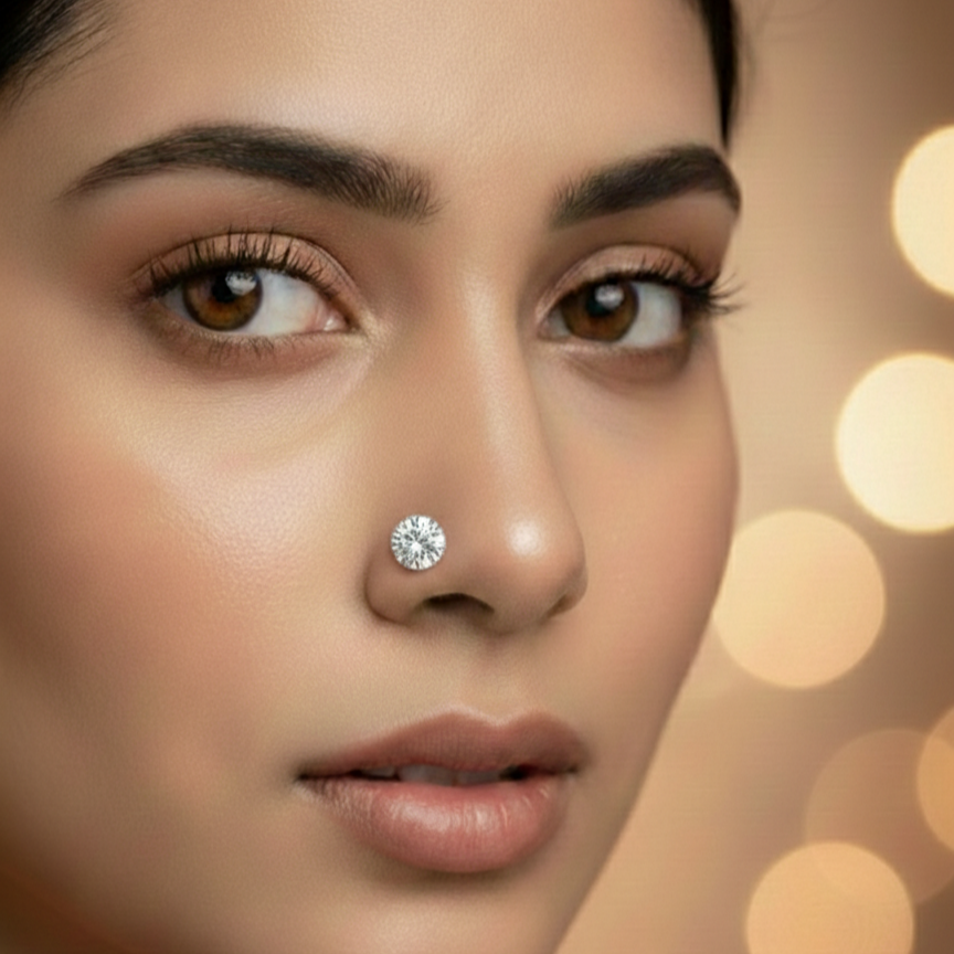 This exquisite American Diamond nose pin features a brilliant, ethically-sourced diamond set in a sleek, minimalist design. Its shimmering facets catch the light beautifully, adding a touch of elegance to any look. Crafted from 18k Traditional Gold, this nose pin is both durable and stylish, perfect for everyday wear or special occasions.