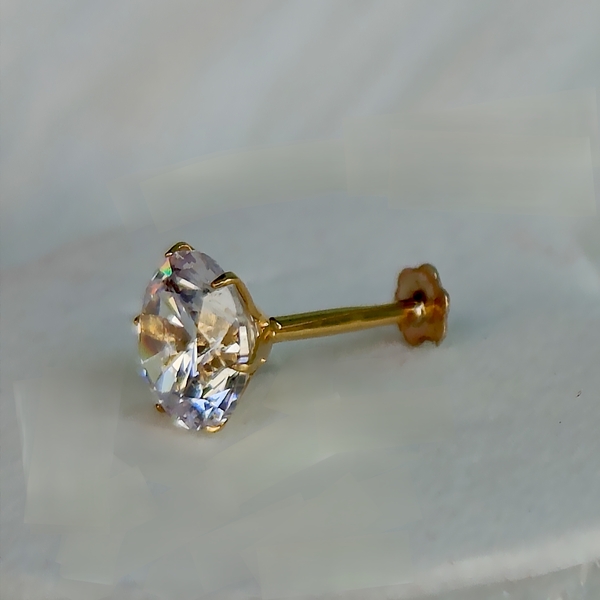 This exquisite American Diamond nose pin features a brilliant, ethically-sourced diamond set in a sleek, minimalist design. Its shimmering facets catch the light beautifully, adding a touch of elegance to any look. Crafted from 18k Traditional Gold, this nose pin is both durable and stylish, perfect for everyday wear or special occasions.