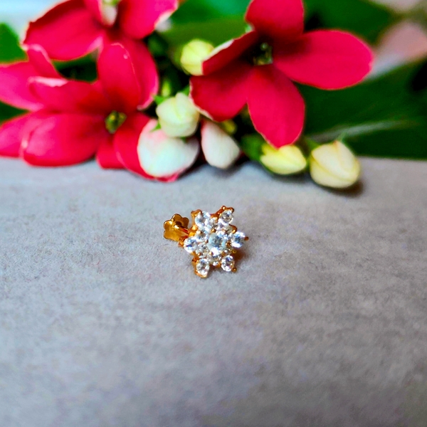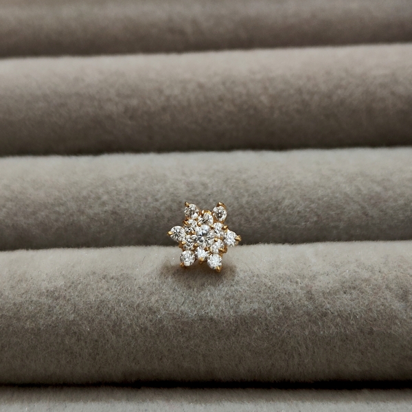 This exquisite American Diamond nose pin features a brilliant, ethically-sourced diamond set in a sleek, minimalist design. Its shimmering facets catch the light beautifully, adding a touch of elegance to any look. Crafted from 18k Traditional Gold, this nose pin is both durable and stylish, perfect for everyday wear or special occasions.