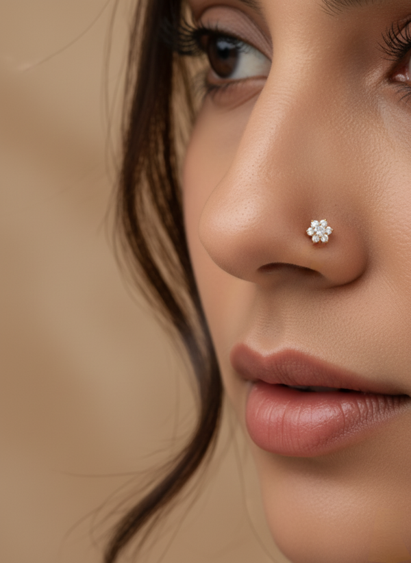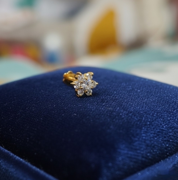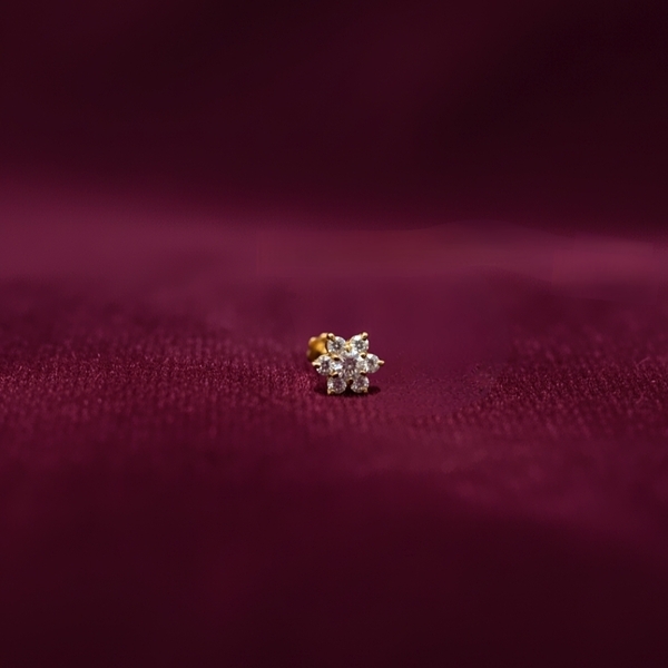This exquisite American Diamond nose pin features a brilliant, ethically-sourced diamond set in a sleek, minimalist design. Its shimmering facets catch the light beautifully, adding a touch of elegance to any look. Crafted from 18k Traditional Gold, this nose pin is both durable and stylish, perfect for everyday wear or special occasions.