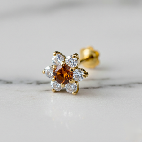 American Diamond Seven Stone Orange Nose Pin